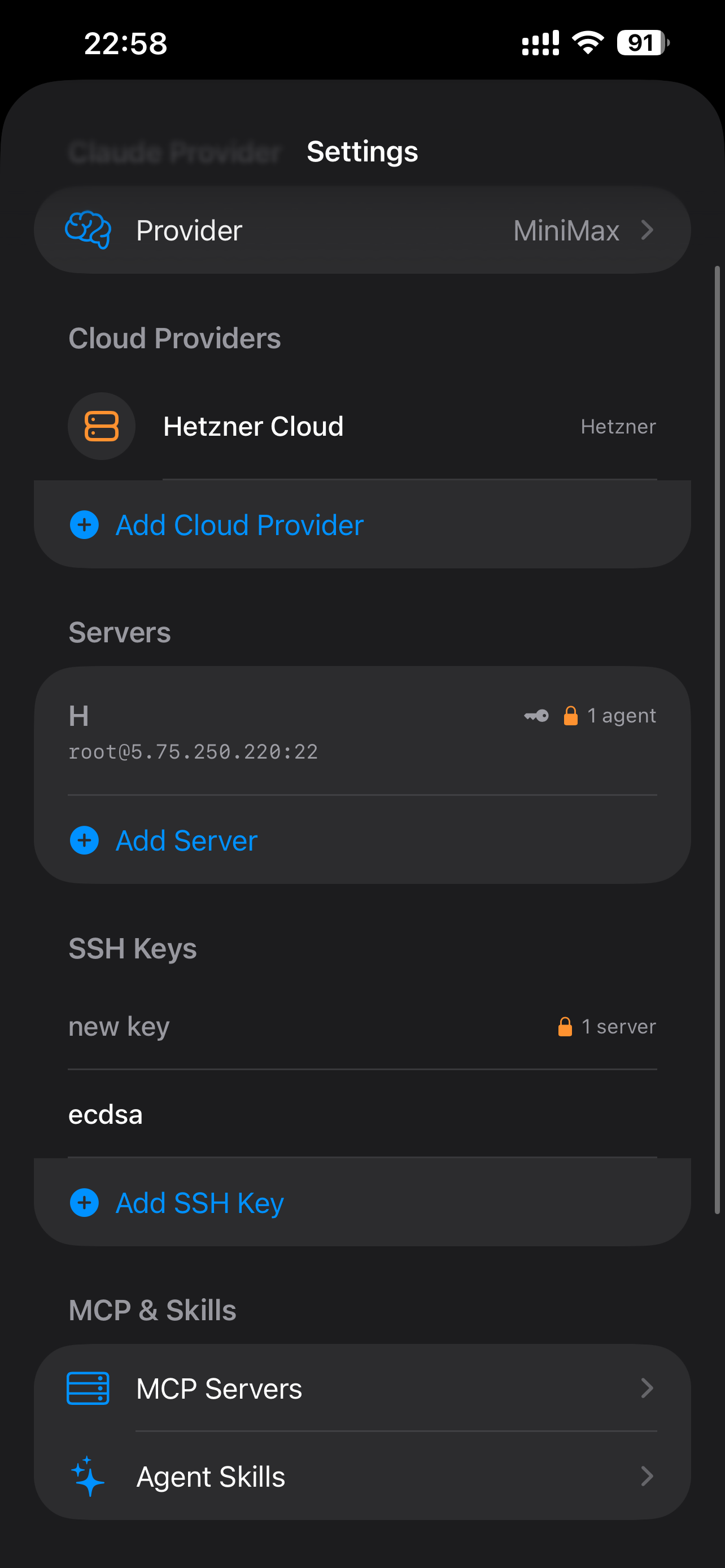 Connect your Digital Ocean and Hetzner accounts to provision development servers instantly. Auto-install Claude Code, configure SSH access, and start coding in minutes—all from your mobile device.